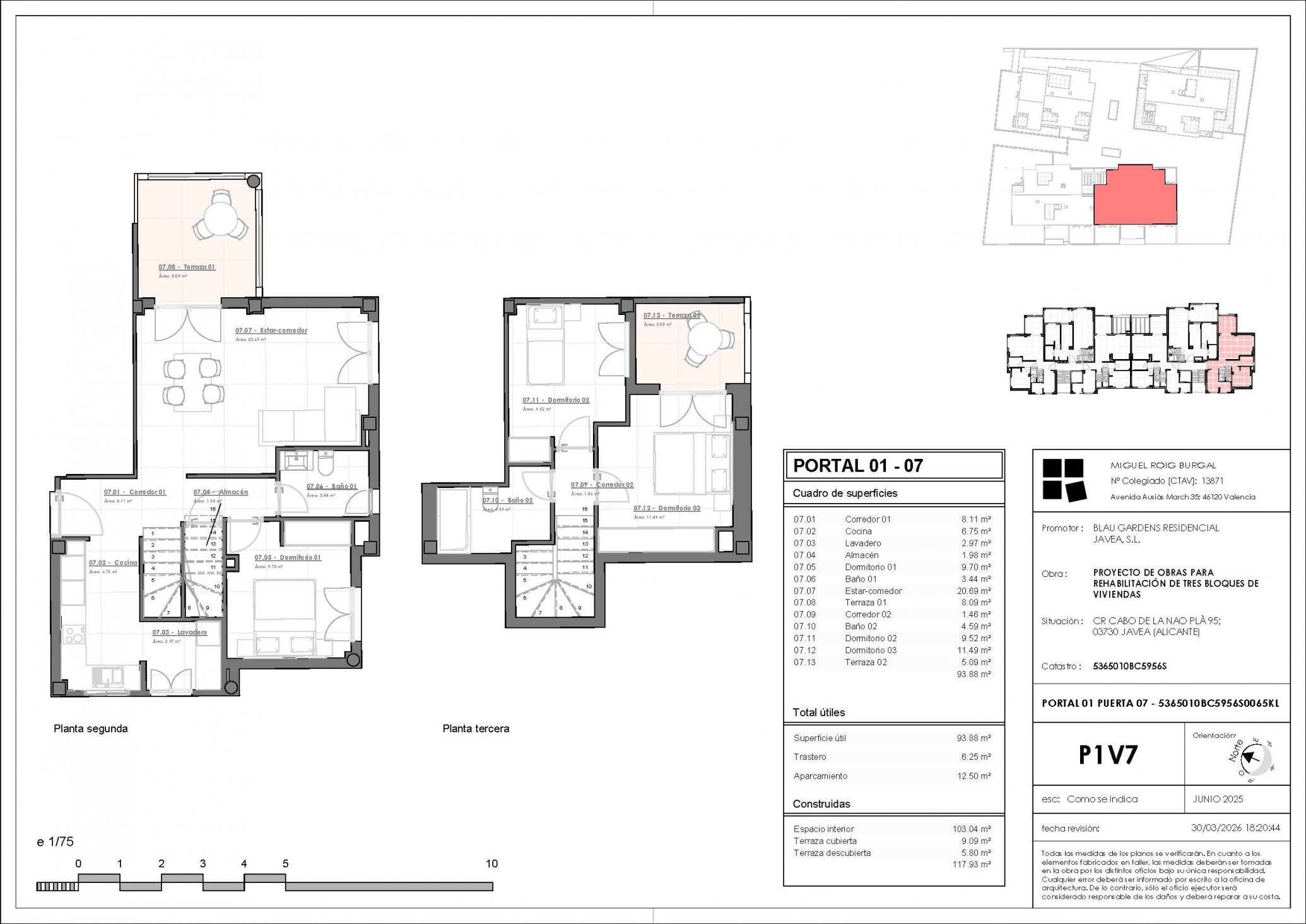 Vivienda dúplex ubicada en la planta 2 que cuenta con una superficie de 117,93 metros construidos, ditribuidos en 3 dormitorios, 2 cuartos de baño, salón comedor y cocina. Dispone de 2 amplias terrazas. Plaza de garaje y trastero incluido en el precio.