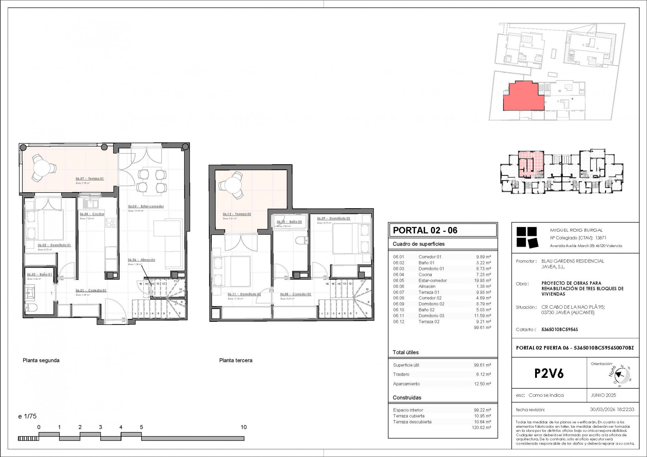Vivienda dúplex ubicada en la planta 2 que cuenta con una superficie de 120,81 metros construidos, ditribuidos en 3 dormitorios, 2 cuartos de baño, salón comedor y cocina. Dispone de 2 amplias terrazas. Plaza de garaje y trastero incluido en el precio.
